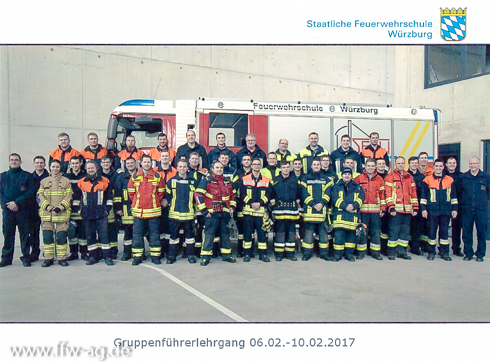 Mit Jörg Hartwich und Michael Köppel haben nun zwei Kameraden den Gruppenführerlehrgang vom 6. bis zum 10. März 2017 erfolgreich an der Staatlichen Feuerwehrschule in Würzburg absolviert. Beide müssen noch vom Kommandanten zur Jahreshauptversammlung ins Amt berufen werden und stehen dann der Feuerwehr neben den beiden Kommandanten als Führungsdienstkraft zur Verfügung. Gruppenführer sind aufgrund der Ausbildung befähigt eine Einheit bis zur Gruppenstärke selbständig im Einsatz zu führen. Des weiteren übernehmen sie Kraft Gesetz die Einsatzleitung innerhalb des Gemeindegebietes wenn im Einsatzfall kein Kommandant der örtlich zuständigen Wehr anwesend ist. Erst nachdem der örtliche Stellvertreter bzw. der Kommandant an der Einsatzstelle eintrifft geht die Einsatzleitung an diesen über. Beide Feuerwehrkameraden, Jörg Hartwich seit 25 Jahren Feuerwehrmann und Michael Köppel seit elf Jahren bei uns in der Feuerwehr, sind 40 Jahre alt und stehen der Wehr nun mindestens 25 Jahre als Gruppenführer zur Verfügung.