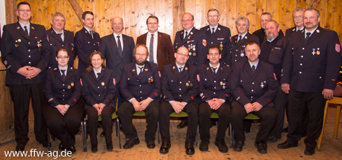 Als Höhepunkt der Versammlung konnte Kreisbrandrat Reiner Hoffmann noch einige Ehrungen durchführen. Das Goldene Feuerwehrehrenzeichen für seine 40-jährige aktive Dienstzeit konnte der Albertsreuther Hermann Opel in Empfang nehmen. Seit 25 Jahren leisten Jörg Hartwich, Stefan Strößner und Daniel Schaller aktiven Feuerwehrdienst und sind mit dem Silbernen Feuerwehrehrenzeichen ausgezeichnet worden. Vom Kommandanten Gerald Hick wurde anschließend Rudolf Schaller für 45 aktive Jahre geehrt. Der stellvertretende Kommandant Daniel Schaller konnte dann den Chef der Feuerwehr für seine 35-jährige aktive Dienstzeit ehren. Seit 20 Jahren ist unsere erste Dame Christa Herdegen nun schon dabei und wurde für diese Dienstzeit mit einem Dienstaltersabzeichen ausgezeichnet. Seit zehn Jahren sind die Geschwister Simone und Florian Kießling nun schon aktiv bei der Feuerwehr und wurden mit dem entsprechend Dienstaltersabzeichen geehrt.