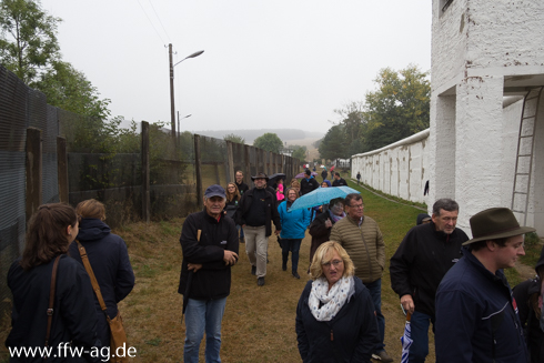 Im Anschluss konnten wir einen Infofilm über die Entwicklung der Grenze von 1945 bis 1990 schauen, in dem auch viele Details genannt wurden, die viele noch nicht bzw. nicht mehr wussten. Es ging dann weiter durch das Dorf über die jetzt grüne Grenze - den ehemaligen Grenzstreifen - auf die Ostseite des Dorfes.